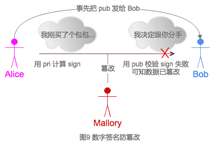 - Alice用pri加密msg,生成SIGN1,将msg + SIGN1同时发送给Bob