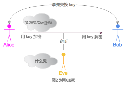 - Alice和Bob事先商量好key。